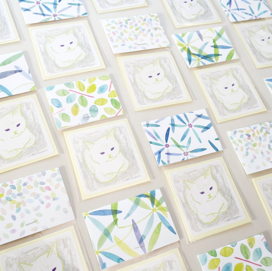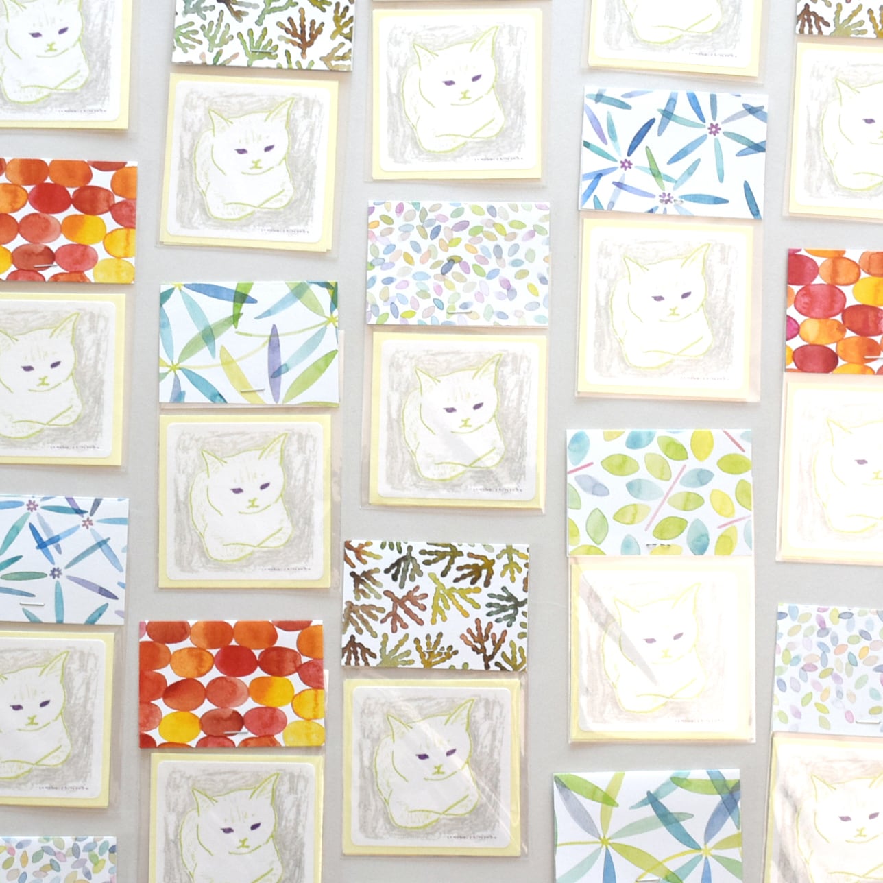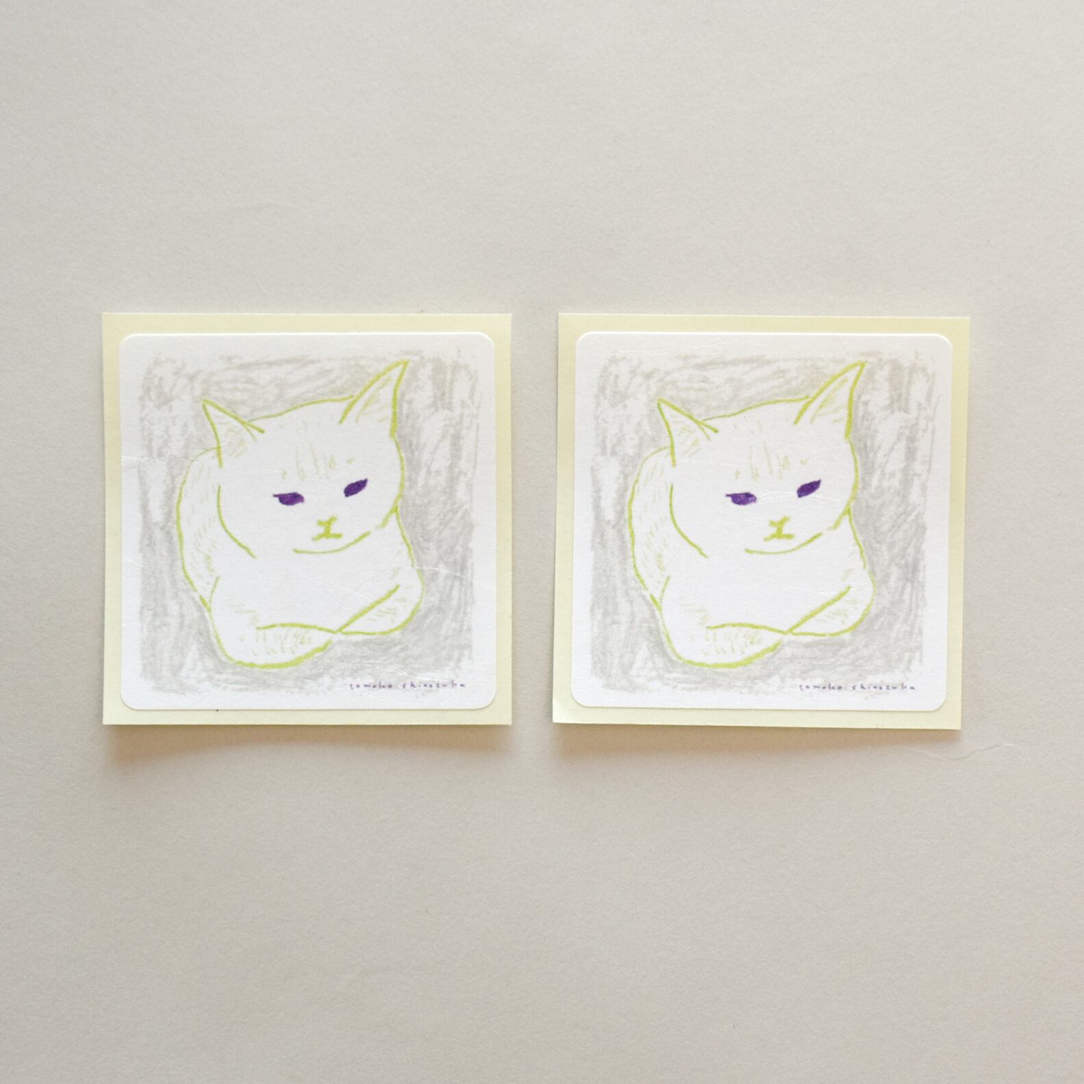 愛らしい香箱座りをする猫のデザインが施された、大きめの角丸ステッカー二枚セットです。猫好きにはたまらない、心癒されるデザインが特長です。