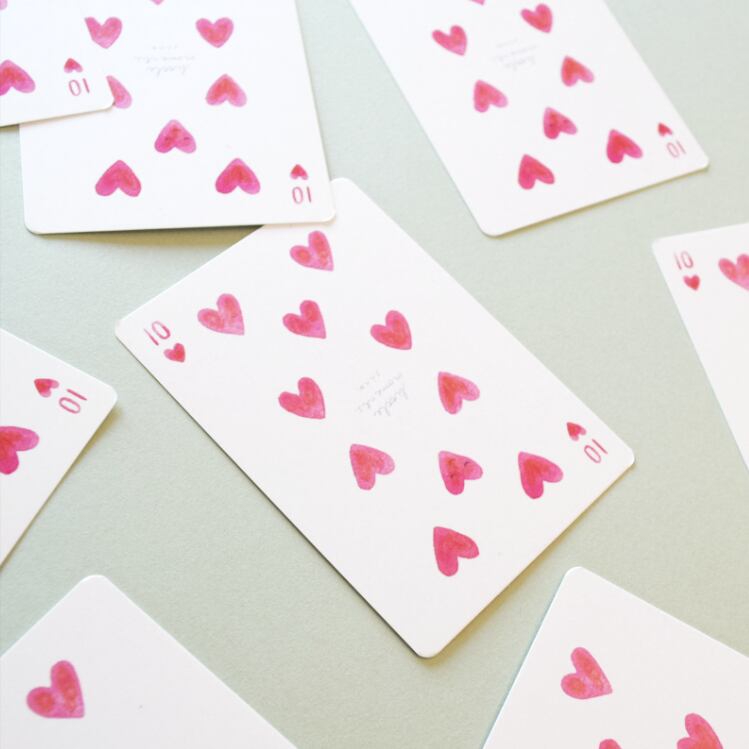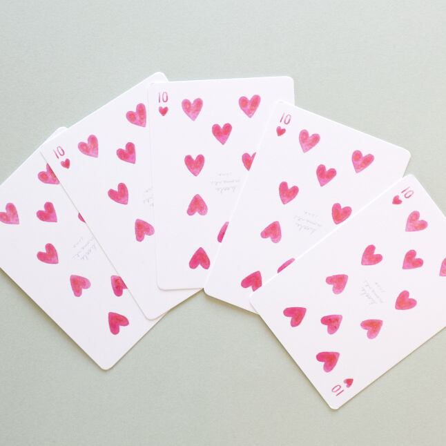 トランプ風のミニカードセット。絵柄はトランプの中でハートの数が一番多い「♡10」。