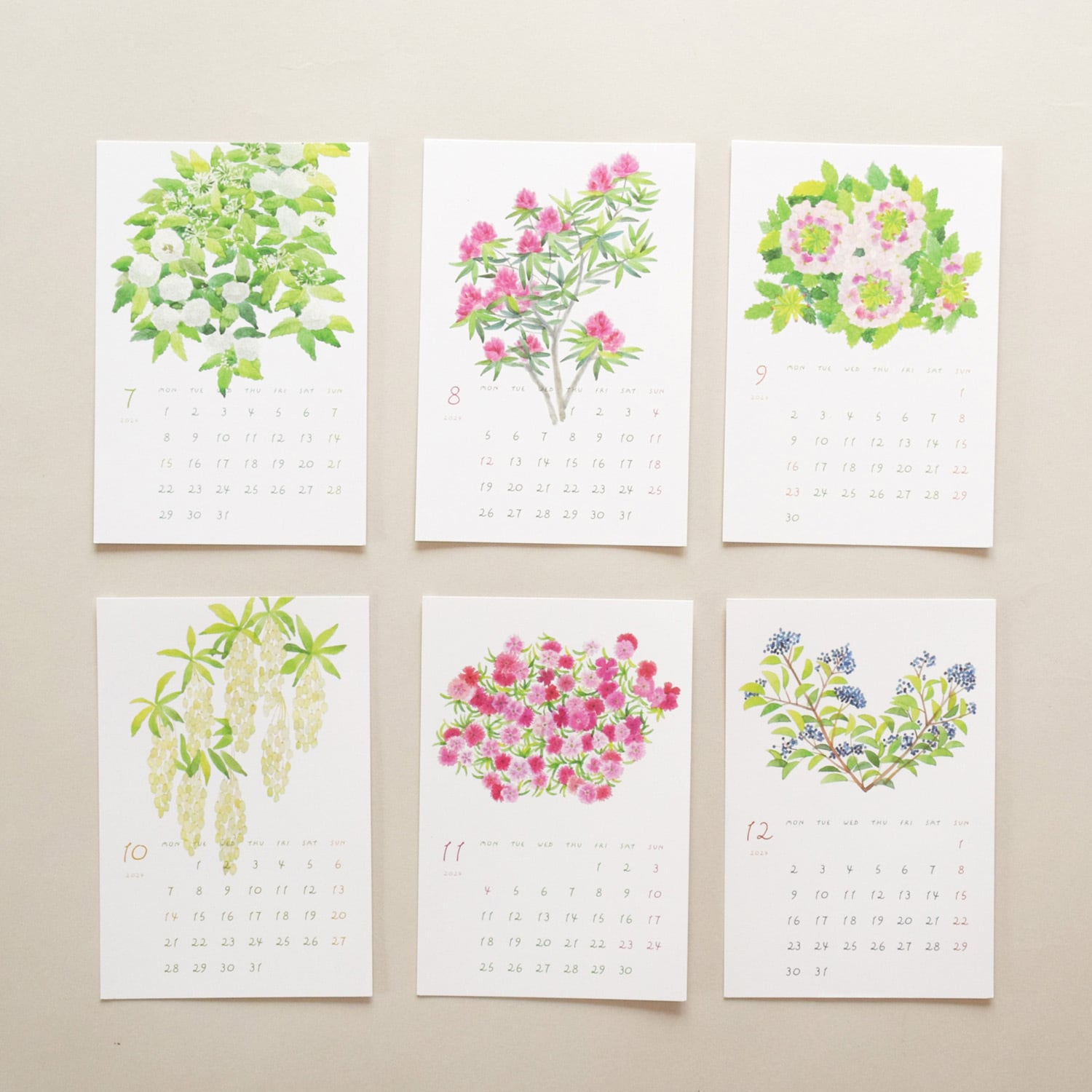 花々の美しさを一年中楽しめる、12種類の花のイラストが描かれたカレンダーです。
